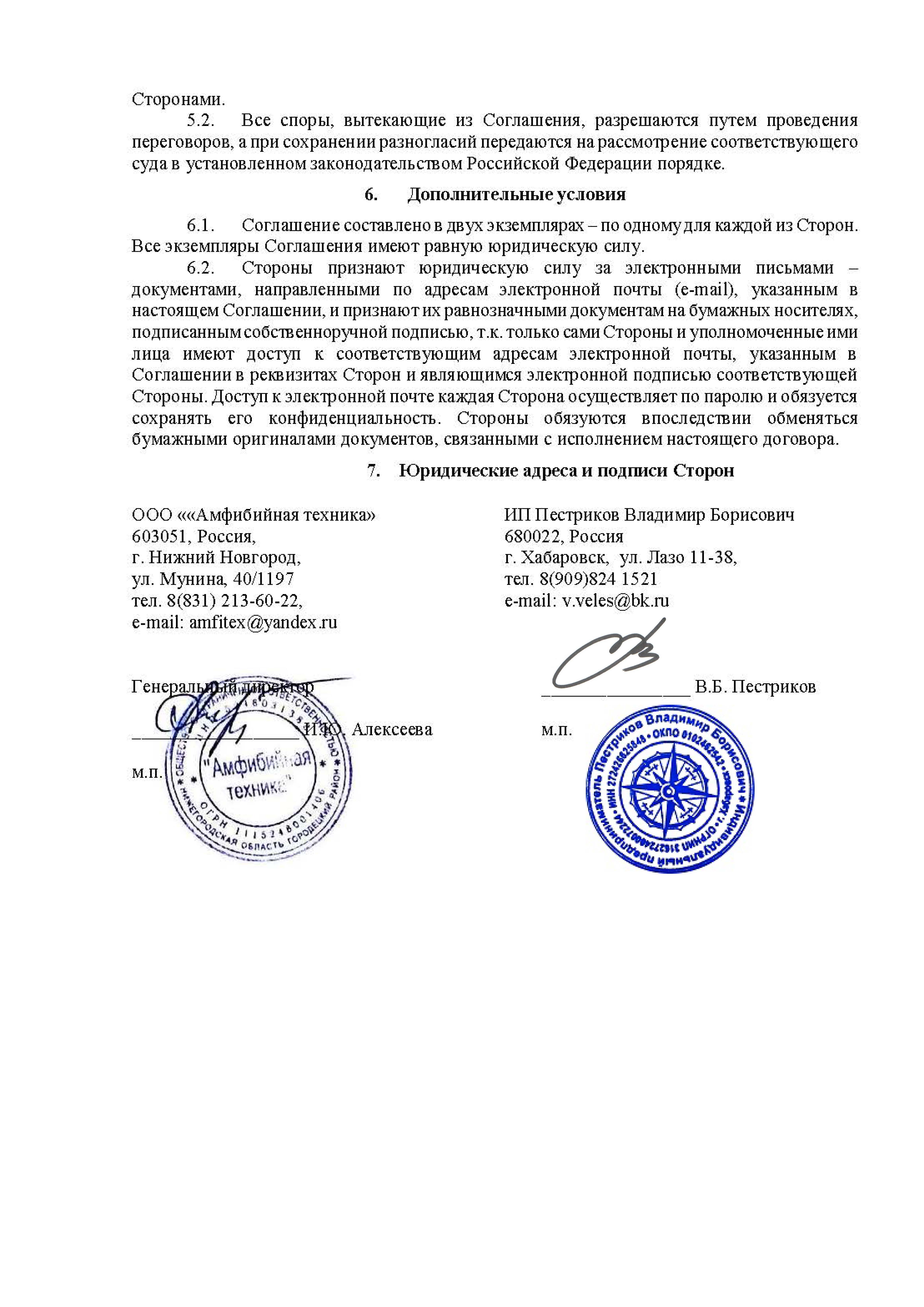 Наименование организации: индивидуальный предприниматель Пестриков Владимир Борисович